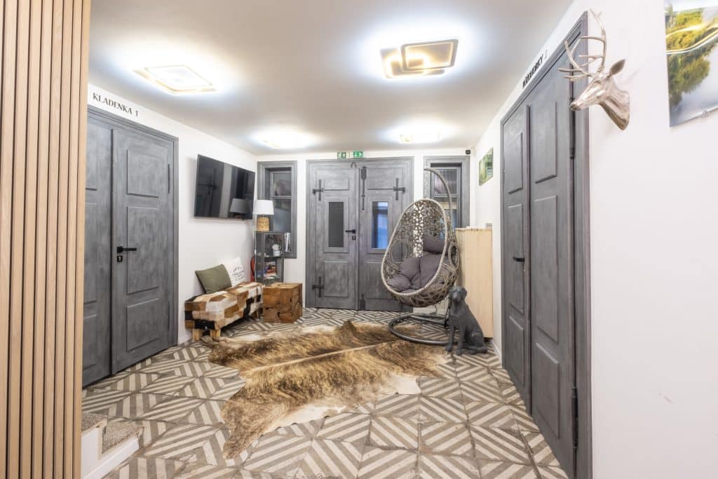 Chata má zajímavý interiér s přírodními materiály a poskytuje 8 osobitých pokojů, kde se budete cítit zcela odpočatí.